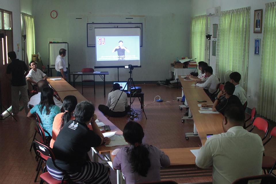နိုင်ငံတော်အစိုးရမှ ၂၀၁၁ ခုနှစ်၊ ဒီဇင်ဘာလ ၇ ရက်နေ့တွင် စတင်လက်မှတ်ရေးထိုး အတည်ပြုခဲ့သော ကုလသမဂ္ဂ မသန်စွမ်းသူအခွင့်အရေးများဆိုင်ရာ သဘောတူစာချုပ်ကို မြန်မာလက်သင်္ကေတဖြင့် ချဉ်းကပ်ခြင်း စီမံကိန်း – ဒုတိယအကြိမ် အလုပ်ရုံဆွေးနွေးပွဲကို ၂၀၁၇ ခုနှစ်၊ ဧပြီလ ၂၉-၃၀ ရက်နေ့များတွင် နံနက် ၉း၀၀ နာရီမှ ညနေ ၅း၀၀ နာရီအထိ လူမှုဝန်ထမ်းဦးစီးဌာနမှ ဆရာ/ဆရာမများ၊ နားမကြားကျောင်းများမှ ဆရာ/ဆရာမများ၊ နားမကြားအဖွဲ့အစည်းများမှ ခေါင်းဆောင်များဖြင့် အောင်မြင်စွာ ကျင်းပပြုလုပ်နိုင်ခဲ့ပါသည်။