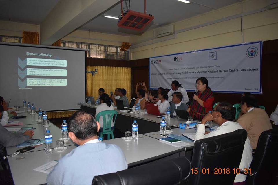 မြန်မာနိုင်ငံအမျိုးသားလူ့အခွင့်အရေးကော်မရှင် နှင့် Advocacy meeting & Awareness raising workshop တို့ကို ၂၀၁၈ ခုနှစ်၊ ဇန်နဝါရီလ (၁၅) ရက်နေ့တွင် ရန်ကုန်တိုင်းဒေသကြီး၊ ၆ မိုင်ခွဲရှိ မြန်မာ်နိုင်ငံ အမျိုးသားလူ့အခွင့်အရေးကော်မရှင် ရုံးခန်း၌ အောင်မြင်စွာ ပြုလုပ်နိုင်ခဲ့ပါသည်။