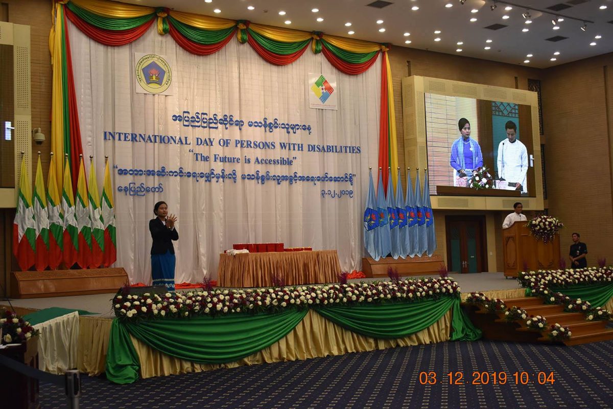 လူမှုဝန်ထမ်း၊ ကယ်ဆယ်ရေးနှင့် ပြန်လည် နေရာချထားရေး ဝန်ကြီးဌာန ၏ လမ်းညွန်မှု၊ UNICEF Myanmar ၏ ပံ့ပိုးမှုတို့ဖြင့် မြန်မာနီုင်ငံ နားမကြားသူများ ဖွံ့ဖြိုးတိုးတက်ရေး အဖွဲ့က အကောင်အထည်ဖော်ခဲ့သော မသန်စွမ်းသူများ၏ အခွင့်အရေး နည်းဥပဒေများ လက်သင်္ကေပြ ဘာသာပြန် ဗွီဒီယိုအခွေကို ၂၀၁၉ ခုနှစ်၊ အပြည်ပြည်ဆိုင်ရာ မသန်စွမ်းသူများနေ့ အခမ်းအနား ၌ မိတ်ဆက် ဖြန့်ချိနိုင်ခဲ့ပါသည်။