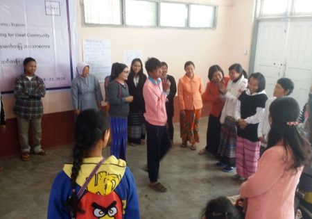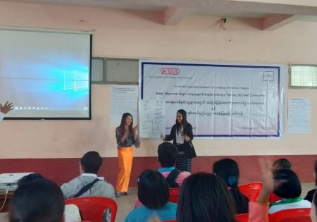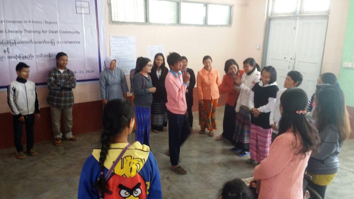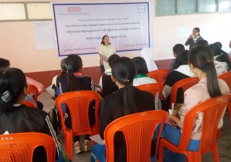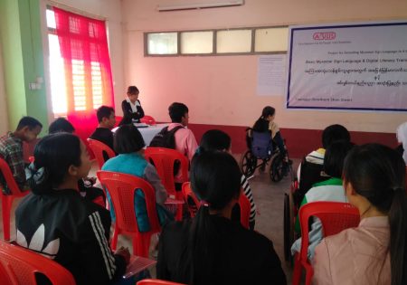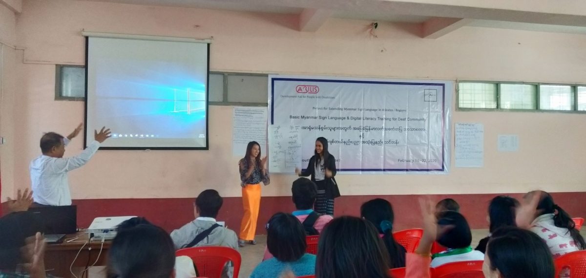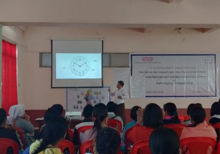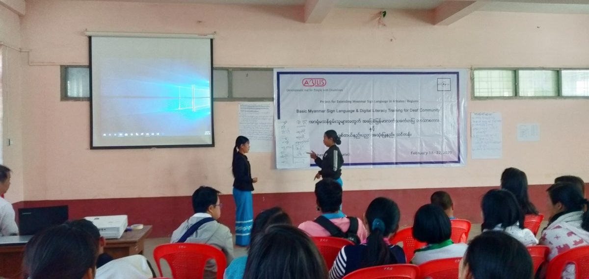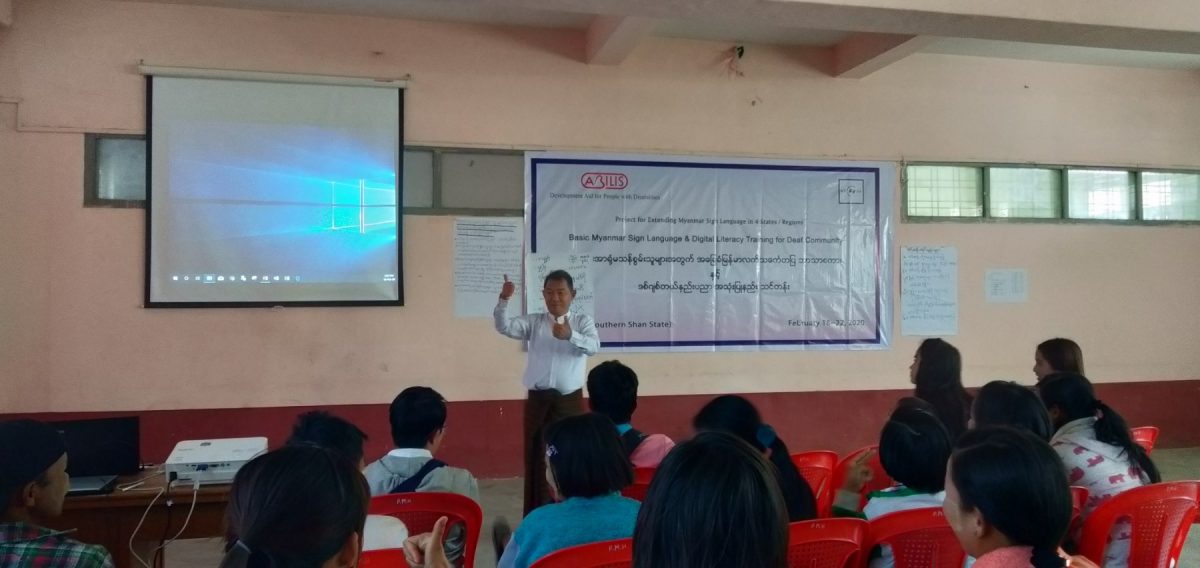 Abilis foundation ၏ ပံ့ပိုးမှု ၊ မီလီ တောင်ကြီးရုံးခွဲ ၏ ပူးပေါင်း ပါဝင်မှု၊ Morning Star ID အဖွဲ့၏ ကူညီမှုတို့ဖြင့် မြန်မာနိုင်ငံနားမကြားသူများ ဖွံ့ဖြိုးတိုးတက်ရေးအဖွဲ့က ရှမ်းပြည်နယ်တောင်ပိုင်း၊ တောင်ကြီးမြို့တွင် အခြေခံလက်သင်္ကေတပြ ဘာသာစကား သင်တန်းတစ်ရပ်ကို ဖွင့်လှစ်ပို့ချပေးလျက်ရှိသည်။ ၅ ရက်တာပြုလုပ်မည့် သင်တန်းအစီအစဉ်တွင် ပါဝင်သည့် မှတ်တမ်းများအနက် သင်တန်းပထမနေ့ပုံရိပ်များ ကို ရှေးဦးစွာ တင်ပြထားပါသည်။