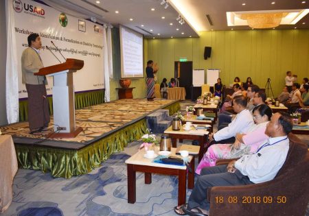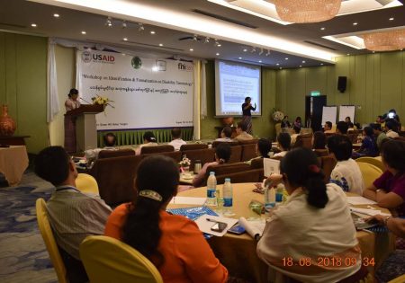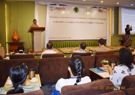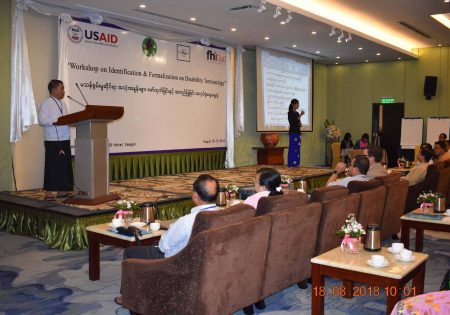 မသန္စြမ္းမႈဆိုင္ရာ ေဝါဟာရ အသံုးအႏႈန္းမ်ား လက္စြဲလမ္းညြန္ စာအုပ္ ထြက္ေပၚေရးအတြက္ အလုပ္ရံုေဆြးေႏြးပြဲ ျမန္မာႏိုင္ငံတြင္ မသန္စြမ္းမႈႏွင့္ မသန္စြမ္းသူမ်ားအေပၚ သံုးႏႈန္းသင့္သည့္ ေဝါဟာရ အသံုးအႏႈန္းမ်ား ႏွင့္ ပတ္သက္၍ ကိုးကားရမည့္ ရည္ညြန္းခ်က္မ်ား မရိွေသးျခင္းေၾကာင့္ လူမႈေရး၊ ႏိုင္ငံေရး၊ စီးပြားေရး ႏွင့္ က႑ အသီးသီးတို႕တြင္ လြဲမွားသံုးစြဲမႈမ်ားကို ရံဖန္ရံခါ ၾကံဳေတြ႕ေနရပါသည္။ အမွတ္မထင္ သံုးစြဲမိလိုက္သည့္ အသံုးအႏႈန္း တစ္ခုသည္ မသန္စြမ္းသူမ်ားအေပၚ ႏွိမ့္ခ်ရာေရာက္သည့္ ခြဲျခားဆက္ဆံရာေရာက္သည့္ သေဘာ သက္ေရာက္ေစေသာေၾကာင့္ မသန္စြမ္းသူမ်ားအားလံုး လက္ခံသည့္ အသံုးအႏႈန္းမ်ားကို ေဖာ္ထုတ္ေပးရန္ လိုအပ္လာပါသည္။ အဆိုပါရည္ရြယ္ခ်က္ကို ျဖည့္ဆည္းႏိုင္ေရးအတြက္ လူမႈဝန္ထမ္းဦးစီးဌာန၏ လမ္းညြန္မႈ၊ USAID FHI 360 ၏ ပံ့ပိုးေပးမႈ၊ ျမန္မာႏိုင္ငံ မသန္စြမ္းသူမ်ား အသင္းခ်ဳပ္၏ ဦးေဆာင္မႈ၊ ျမန္မာႏိုင္ငံနားမၾကားသူမ်ား ဖြံ႕ၿဖိဳးတိုးတက္ေရးအဖြဲ႕၏ ပူးေပါင္း ေဆာင္ရြက္မႈ ႏွင့္ တစ္ႏိုင္ငံလံုးမွ မသန္စြမ္းအဖြဲ႕အစည္းမ်ား၏ တက္ႀကြစြာ ပါဝင္မႈတို႕ျဖင့္ မသန္စြမ္းမႈဆိုင္ရာ ေဝါဟာရ အသံုးအႏႈန္းမ်ား လက္စြဲလမ္းညြန္ စာအုပ္ ထြက္ေပၚေရးအတြက္ အလုပ္ရံုေဆြးေႏြးပြဲ တစ္ရပ္ကို ၂၀၁၈ ခုႏွစ္၊ ႀသဂုတ္လ (၁၈) ႏွင့္ (၁၉) ရက္ေန႕မ်ားတြင္ ရန္ကုန္ၿမိဳ႕၊ Best Western Green Hill Hotel ၌ ေအာင္ျမင္စြာ ျပဳလုပ္ႏိုင္ခဲ့ပါသည္။ အလုပ္ရံုေဆြးေႏြးပြဲ ဖြင့္ပြဲအစီအစဥ္တြင္ လူမႈဝန္ထမ္း၊ ကယ္ဆယ္ေရးႏွင့္ ျပန္လည္ေနရာခ်ထားေရး ဝန္ႀကီးဌာန၊ ျပည္ေထာင္စု ဝန္ႀကီးကိုယ္စား လက္ေထာက္ညြန္ၾကားေရးမွဴးတစ္ဦးက အဖြင့္အမွာစကား ေျပာၾကားေပးခဲ့ၿပီး USAID FHI 360 မွ Chief of Party က မုဒိတာ စကားကိုလည္းေကာင္း၊ ျမန္မာႏိုင္ငံ မသန္စြမ္းသူမ်ား အသင္းခ်ဳပ္ဥကၠဌက ႀကိဳဆိုႏႈတ္ခြန္းဆက္စကားကို လည္းေကာင္း၊ အသီးသီး ေျပာၾကားေပးခဲ့သည္။ ထို႕ေနာက္ ျမန္မာႏိုင္ငံနားမၾကားသူမ်ား ဖြံ႕ၿဖိဳး တိုးတက္ေရးအဖြဲ႕ မွ အစီအစဥ္ဒါရိုက္တာ က အလုပ္ရံုေဆြးေႏြးပြဲ က်င္းပရျခင္း၏ ရည္ရြယ္ခ်က္ကို ရွင္းလင္းေျပာၾကားကာ တက္ေရာက္လာၾကသည့္ ဧည့္သည္ေတာ္မ်ားႏွင့္ အမွတ္တရ ဓါတ္ပံုရိုက္ကူးခဲ့ပါသည္။