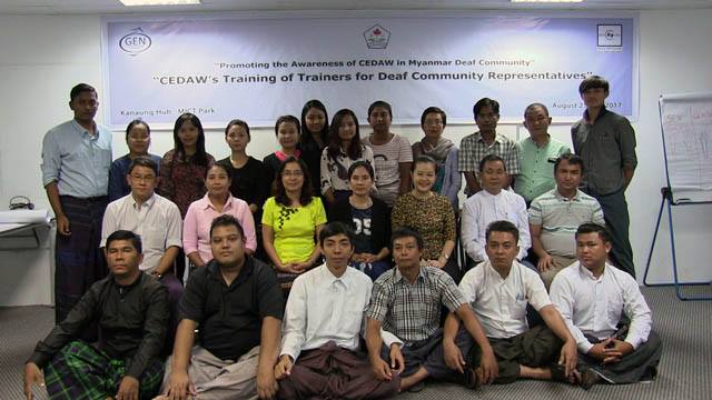 • ထွက်ပေါ်လာသည့် စီဒေါ မြန်မာစံလက်သင်္ကေတပြဘာသာပြန် ဗွီဒီယိုအခွေကို အသုံးပြုကာ နားမကြားလူမှုအသိုင်းအဝိုင်းအတွင်း အမျိုးသမီးများအား နည်းမျိုးစုံဖြင့် ခွဲခြားမှု ပပျောက်ရေး ဆိုင်ရာ ကုလသမဂ္ဂ ကွန်ဗင်းရှင်း ကို သိမြင်နားလည်မှု မြှင့်တင်ပေးရန် ရည်ရွယ်လျက် ရန်ကုန်နှင့် မန္တလေးတို့ရှိ နားမကြားလူမှုအသိုင်းအဝိုင်းကို ဦးတည်လျက် အသိပညာပေး အစီအစဉ်ကို ၂၀၁၇ ခုနှစ်အတွင်း ဆောင်ရွက်ခဲ့သည်။